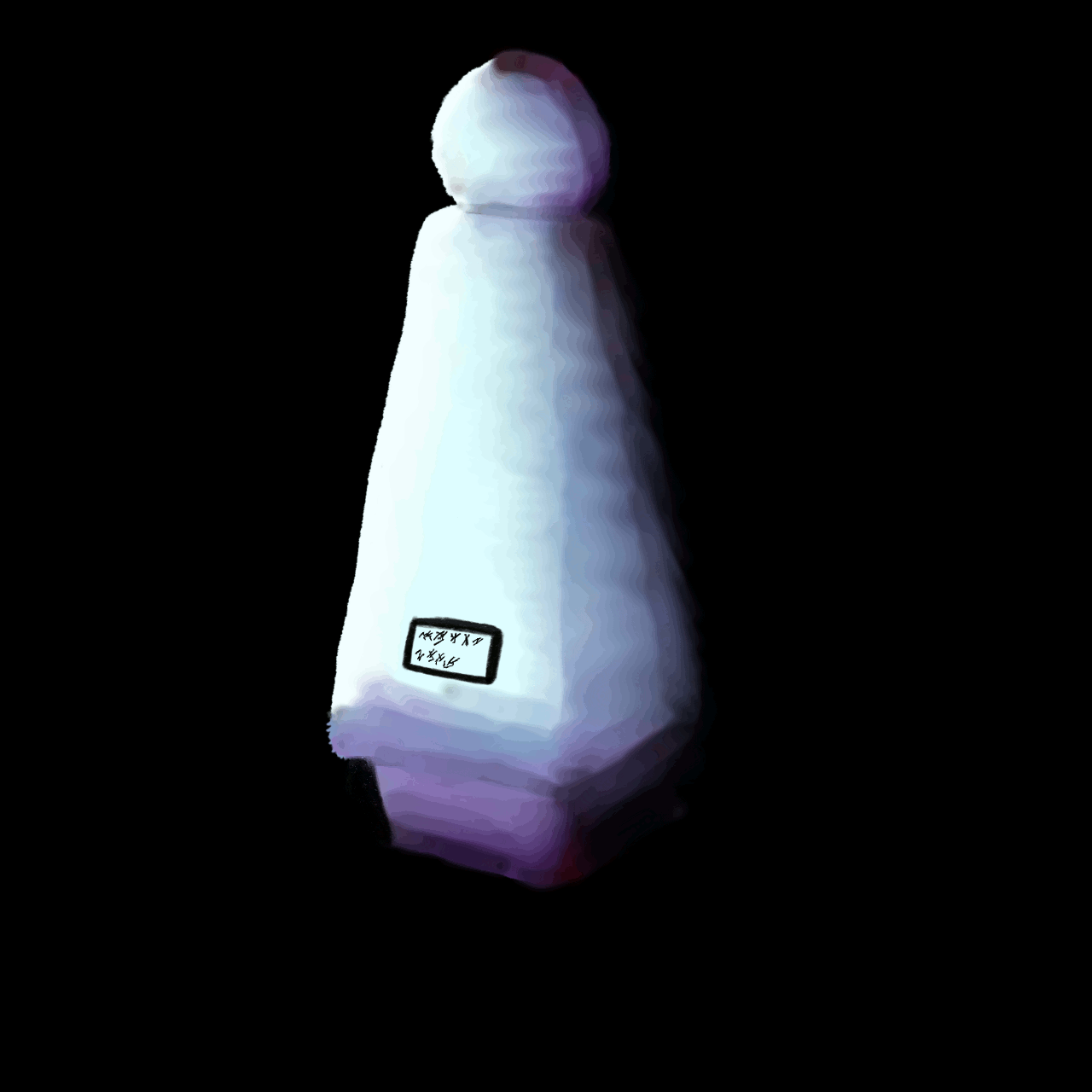 A massive pillar stands before you. It’s bottom tapers and bows out, rapidly climbing up towards an unseen ceiling. A smooth round stone sits atop it.